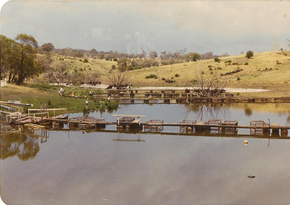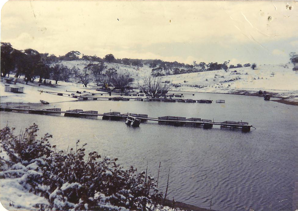 Construction of the Eucumbene Trout Farm was commenced in 1973 by the Craig family. After constructing the main dam, “Stony Lake” a small hatchery was established and trout were grown in large floating cages in the Lake. In December 1980 a flood event, with a 6’ deep wave caused damage to the cage structures on the Lake.